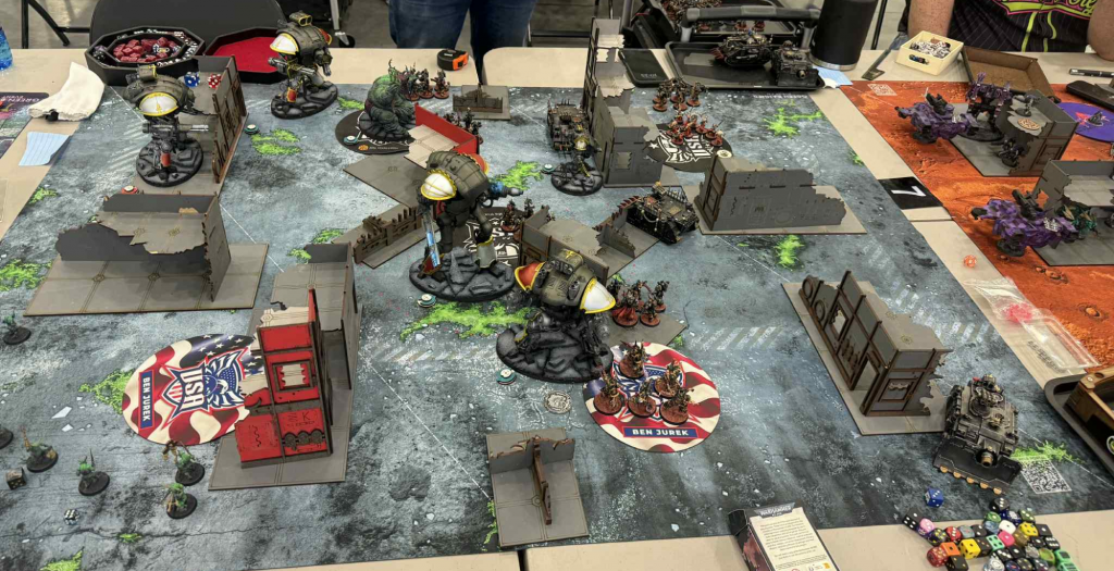 Oh man what a hell of a round 5. But it wasn’t over yet – there was another round and I wanted to go out on a high night. Robby played my USA Academy teammate, Chase Chappel, in the previous round on Wargames Live where Chase was running a very similar Chaos Knights list. Robby lost that one but it was a very Knight-favored mission.