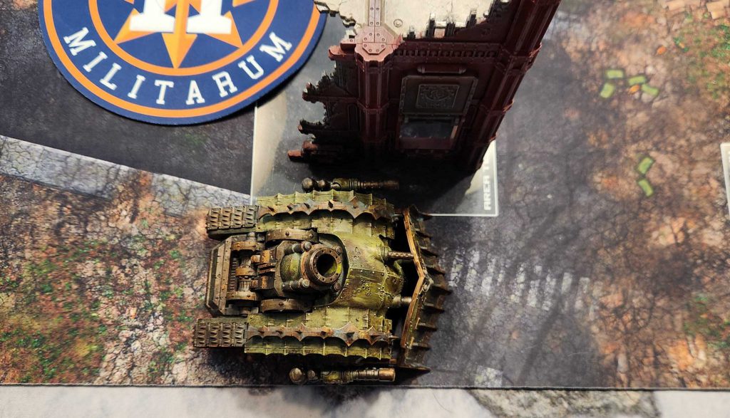 On Tipping Point, Hammer and Anvil, and Crucible of Battle, you’ll have the option to deploy vehicles behind the A Ruin footprint. As that particular ruin is placed 6″ away from the short table edge, you can fit a lot of larger vehicles in that space pretty comfortably.