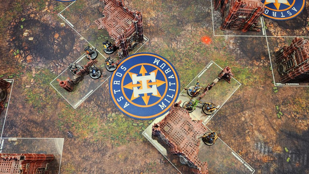 Those small ruins can be more or less annoying depending on what’s on them, but vehicles typically have to clear the entire ruin when moving to hit targets on the other side. Those ruins also prevent having unbroken lines of sight down the long table edges, making deploying near that lone 12″x6″ ruin safer.