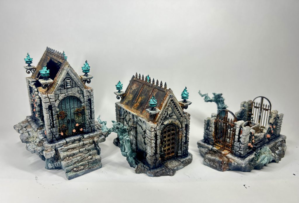 The Cursed Sepulcre is made up of three spooky houses. Two with rooves, one without. It ALSO makes the faction terrain for Nighthaunt, in the guise of a Nexus of Grief. Which is interesting and a bonus if you run both factions! Whilst ostensibly a “multibuild” kit the difference is so negligible between the two you can easily use this for both factions. Huzzah!