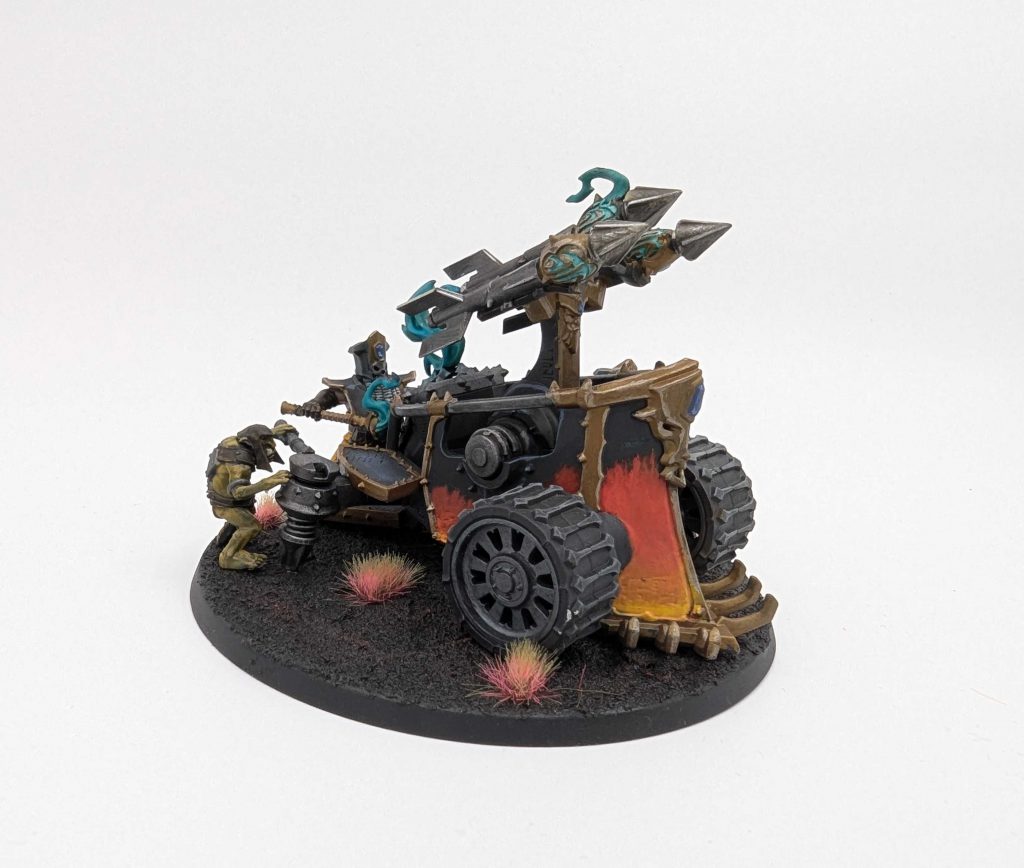 The Zharrdron will trade with anyone who can offer them wealth. Ogre tribes, Kharadon, and isolated cities are all common partners, though the Zharrdron’s oldest pact is with the Kruleboyz, mirroring their relationship to Hobgoblins in the Old World. Kruleboyz are natural allies for the Zharrdron – cruel and cunning, they trade resources dredged from their mires for iron and explosives. They also trade with the warriors of Chaos and Archaeon’s forces. Pretty much everyone. Except the Skaven – they hate the Skaven.