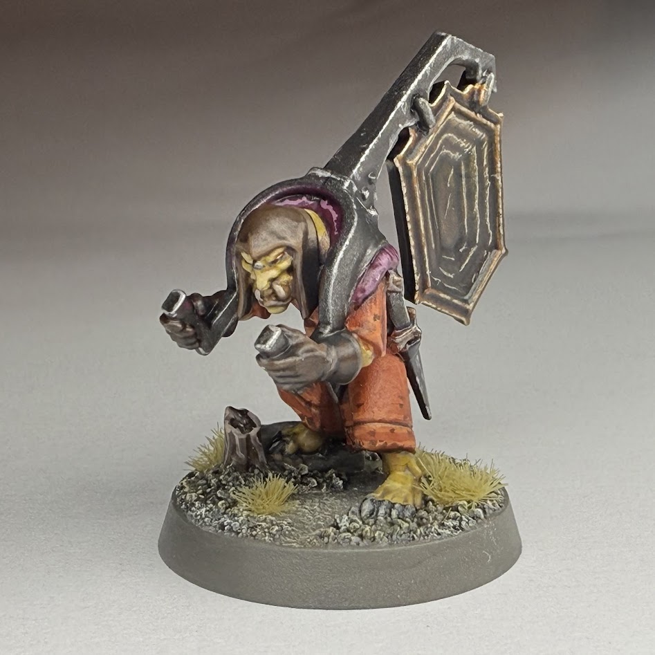 Remember the hobgoblin slaves Chaos Dwarfs had in the old world? Well they’re still kind of here. Zharrdron forces are often accompanied by mobs of hobgrots, who are larger and more imposing than other grots but a bit more sensible. They’re disposable soldiers to the Helsmiths, and they fight for material gain and pilfer whatever they can. They also act as go-betweens between the Duardin and the Kruleboy orruks, facilitating trade or materiel and captured beasts. They tend to infest the lower levels of ziggurats and fall into service under whoever will take them. They act as toadies, thugs, and assassins. They’re not technically ever referred to as slaves, but we don’t get the impression that they’re free and full members of Zharrdron society.