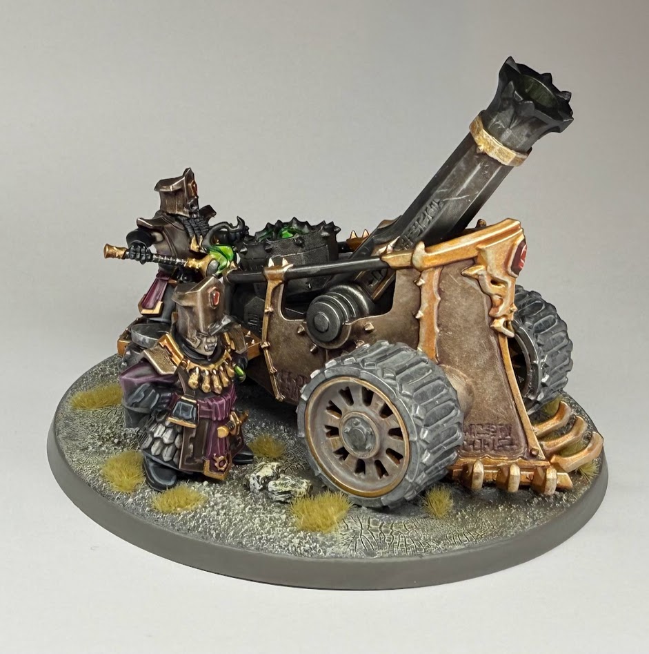The Muspelzharr reside in the mountains of Chamon, surrounded by realmgates to Aqshy that turn the heart around them molten. They study warping-flux magic and believe themselves rightful rulers of more or less everything. They wear black and gold into battle.