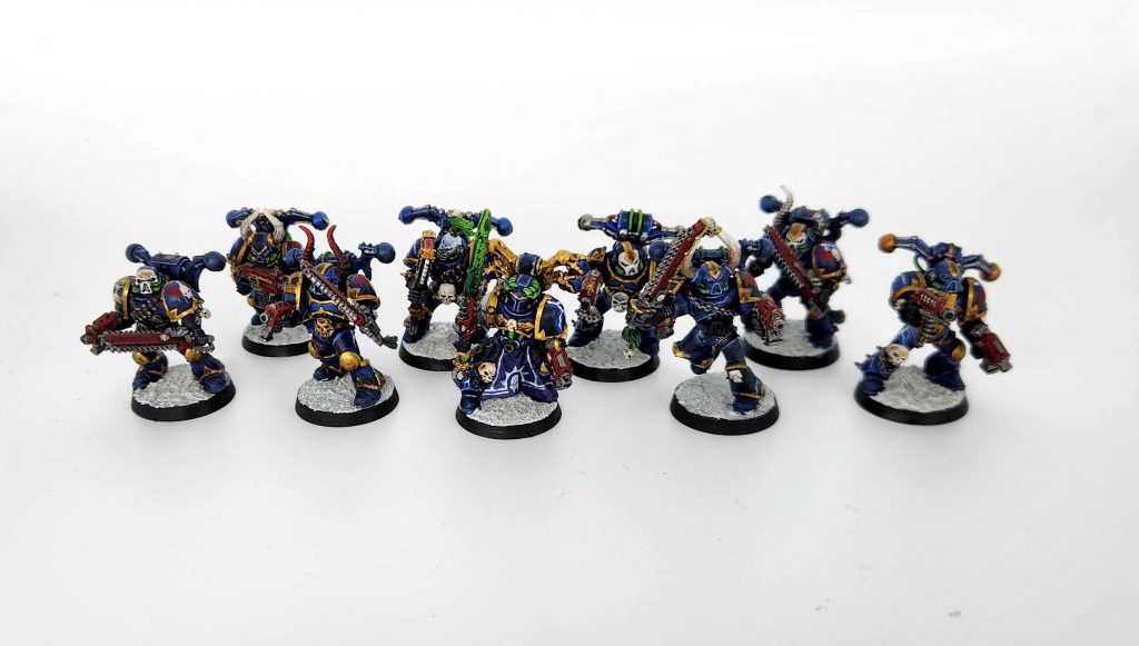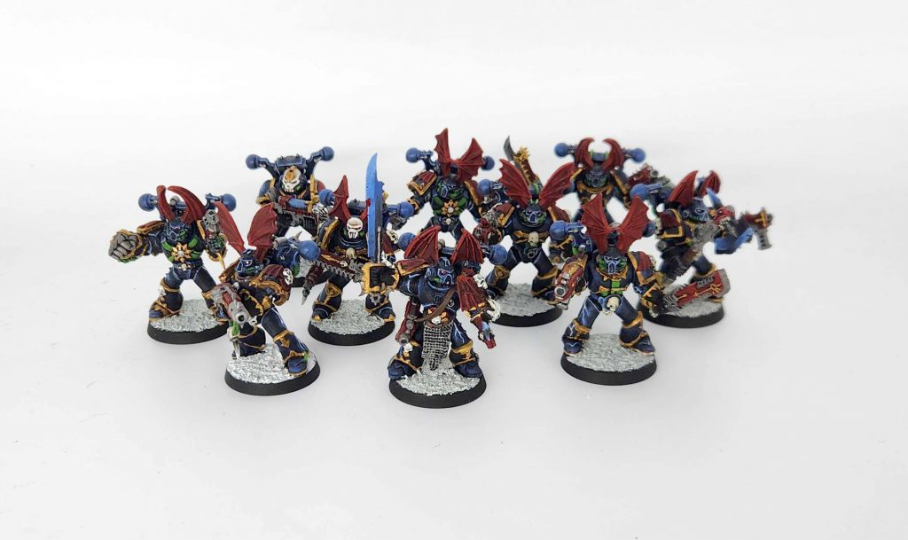 I also took the time to paint up a unit of regular Night Lords Chaos Space Marines, using the third edition kits I’d been using for Iron Warriors and Black Legion, but hadn’t yet for Night Lords.