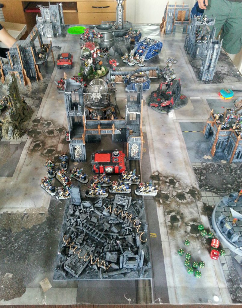 6th edition was terrible but I didn’t care. I was back in. I immediately put together a plan to rope Greg back in, along with our friend Bidwell. Greg had always liked Warhammer but hadn’t played much. He’d played Dark Angels a bit and collected T’au but it didn’t take much to nudge him into playing. I made the trip back down to Maryland and we got some games in down in his basement. His space was a far cry from peters – playing on green felt with some scant terrain he’d accumulated over the last few years, but it was a good start and Greg started to get on building his own table and play space pretty quick.