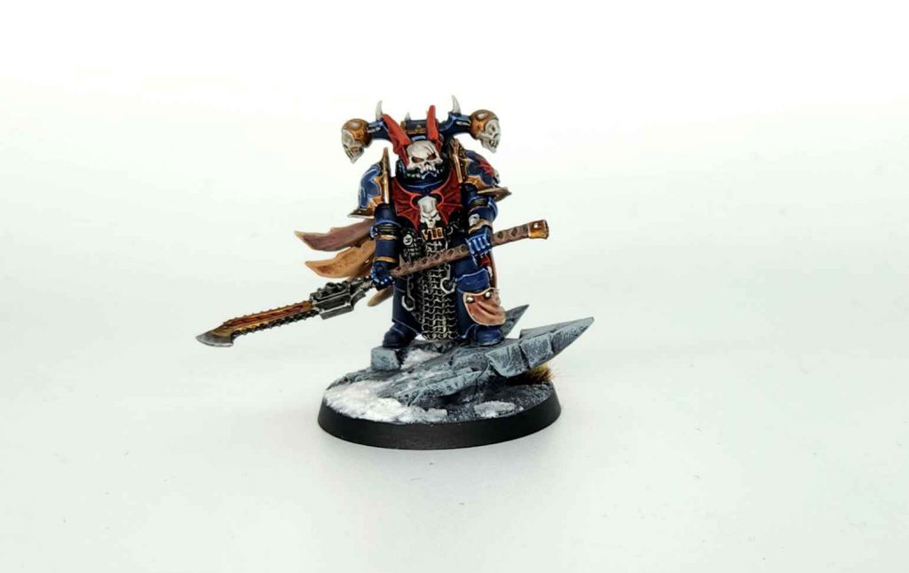 Finally I had two characters I added to the army. The first was a Chaos Lord on foot made using the Night Lords Legion Praetor for Horus Heresy. He’s a smaller model but looks great when mounted on an angled hero rock from the plastic Terminator and a Night Lords skin cape backpack.