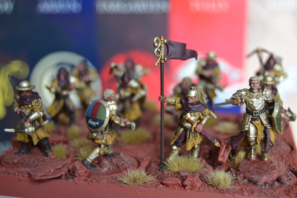 It is such a refreshing and rewarding feeling to put so much work into a thematic list every event and finally getting something out of it. For the Golden Company I searched through countless pages of lore in the books for houses that showed their support to the Blackfyres and were exiled to Essos forming the Golden Company, all to then freehand the sigils on to shields for two Units. To do all that work in addition to fully painting the army with my own mix of white gold and then making three other forces was so much effort. I can’t say how much I truly appreciate not only a shoutout to this but a prize for putting in the work. Thank you so much!