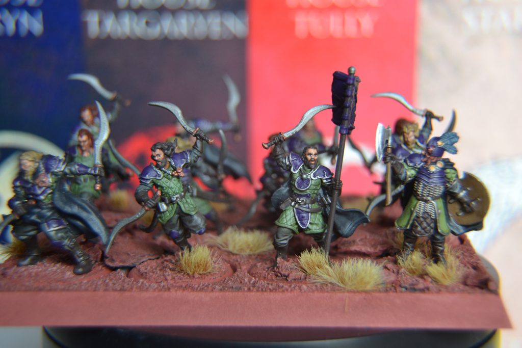 Hedge Knights fit nicely alongside the Stormcrows without breaking the theme, but Bolton Bastard’s Girls breaks this. Or they would, if I didn’t come up with an alternate version for the Unit where we replaced the archers with Stormcrow Archers and the dogs with flocks of crows. We still had space for one other Unit, if I had another Stormcrow Mercenaries Unit I would have taken it, but instead I bought another Essos merc in the form of Lysene Sellswords with their Bosun.