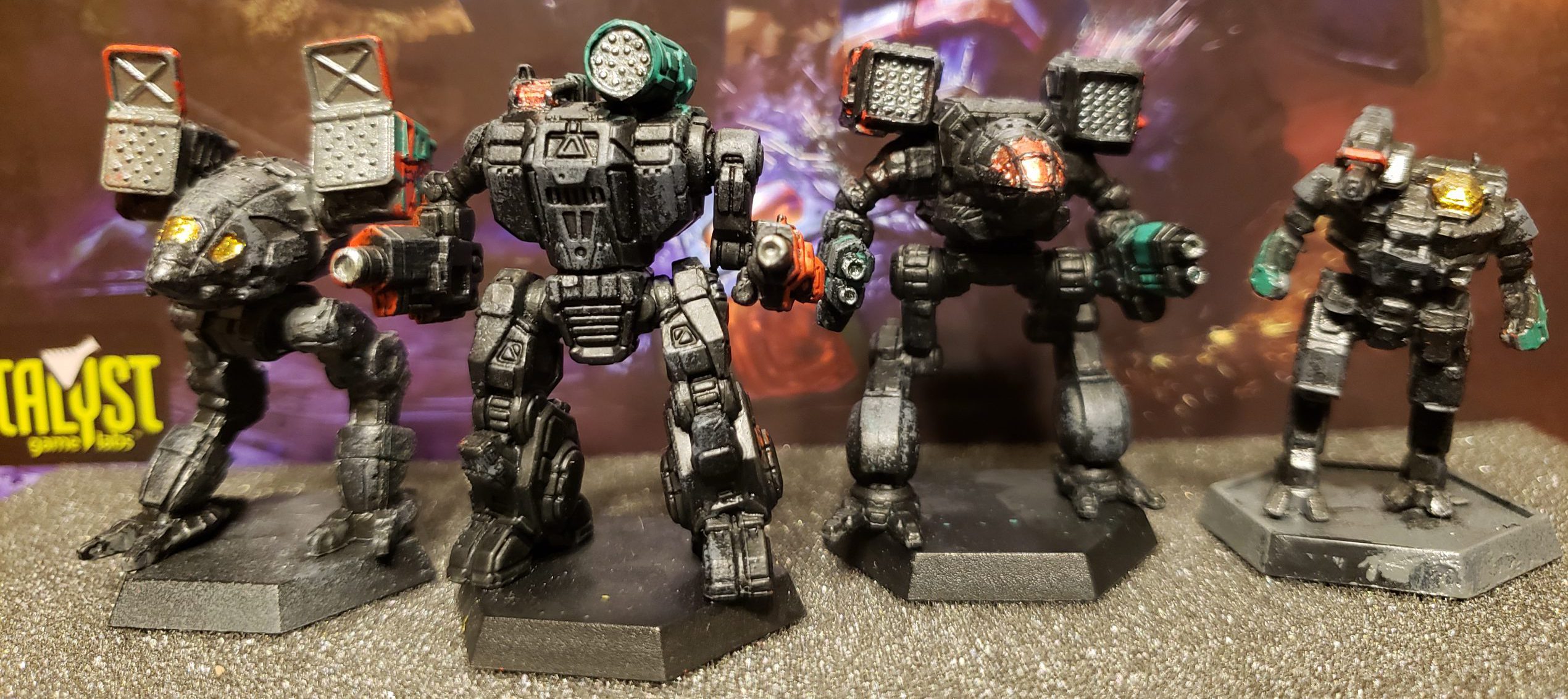 Battletech Mech Lance with new plastics and old metals of the same mechs