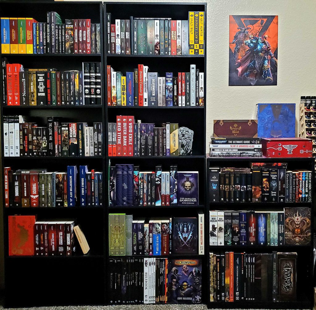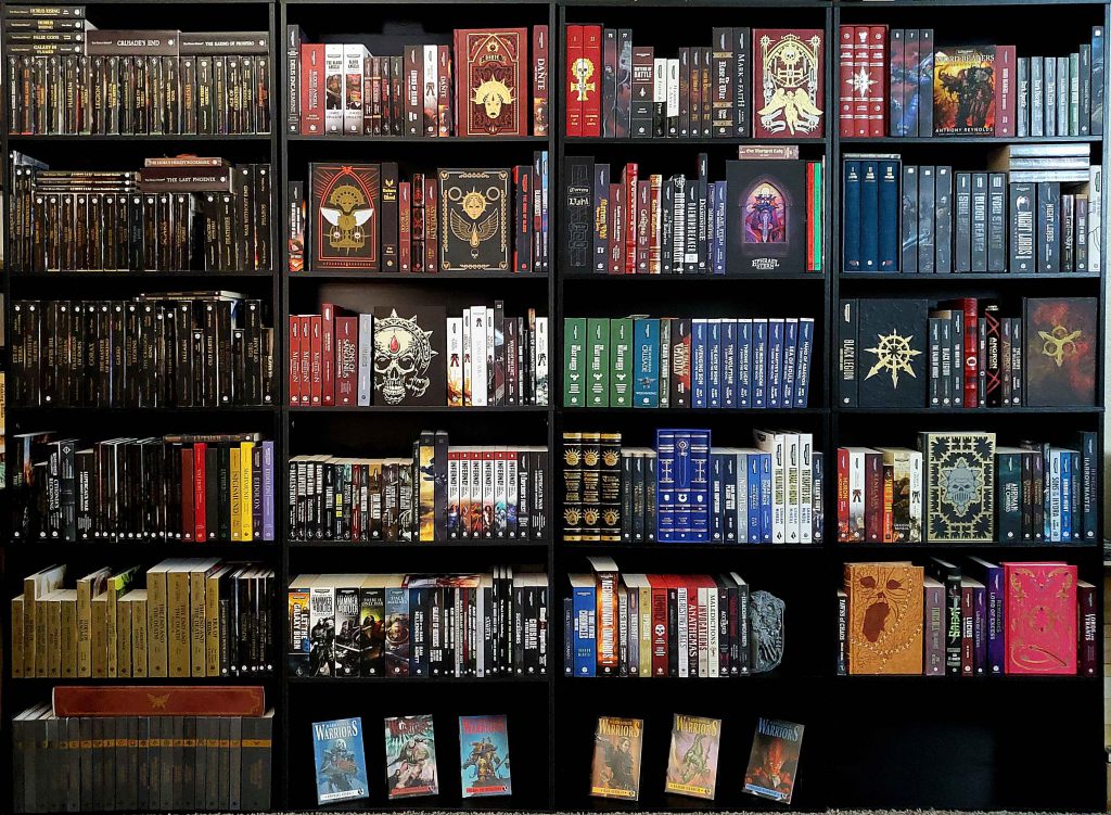 For many of us, a library collection is much more than just a shelf full of books. Rather, it’s a reflection of us and our love of the hobby, from what we choose to decorate the shelves with down to the very method we use to organize them. If there’s one thing you’ll notice when they share pictures of their collections online, it’s that the best ones have a personality all their own. For some it’s the almost martial display of full collections organized by size; for others, a walk through time with their books in chronological order. Sometimes there are curios and mementos mixed in, other times actual Warhammer miniatures of the characters and moments depicted in the books.