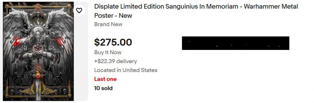 Flashing forward to the present, Displate recently launched their latest limited edition, Sanguinius in Memoriam. Limited to 1,000 pieces, it sold out within the first day. I went ahead and nabbed one for the museum. Total price including shipping, taxes, and fees came out to just over USD $173.