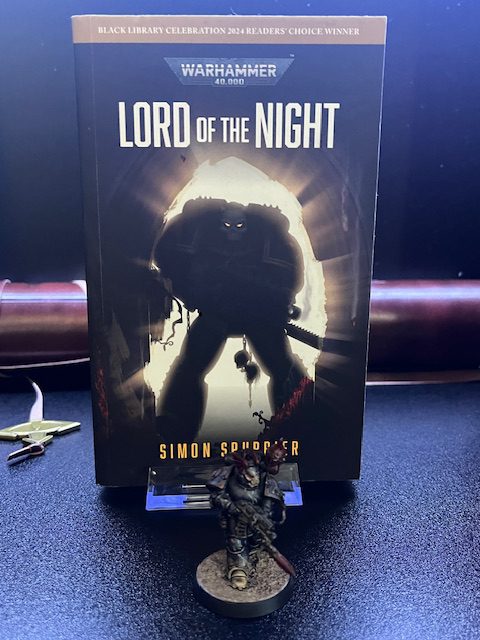 My copy in the museum came to me courtesy of a book swap with a fellow member of the wonderful Black Library subreddit, u/Dima170104, that allowed him to complete his Horus Heresy collection. Imagine my delight when I opened up the box to find not only the books he’d sent me, but also this exceptionally-painted Night Lords miniature.