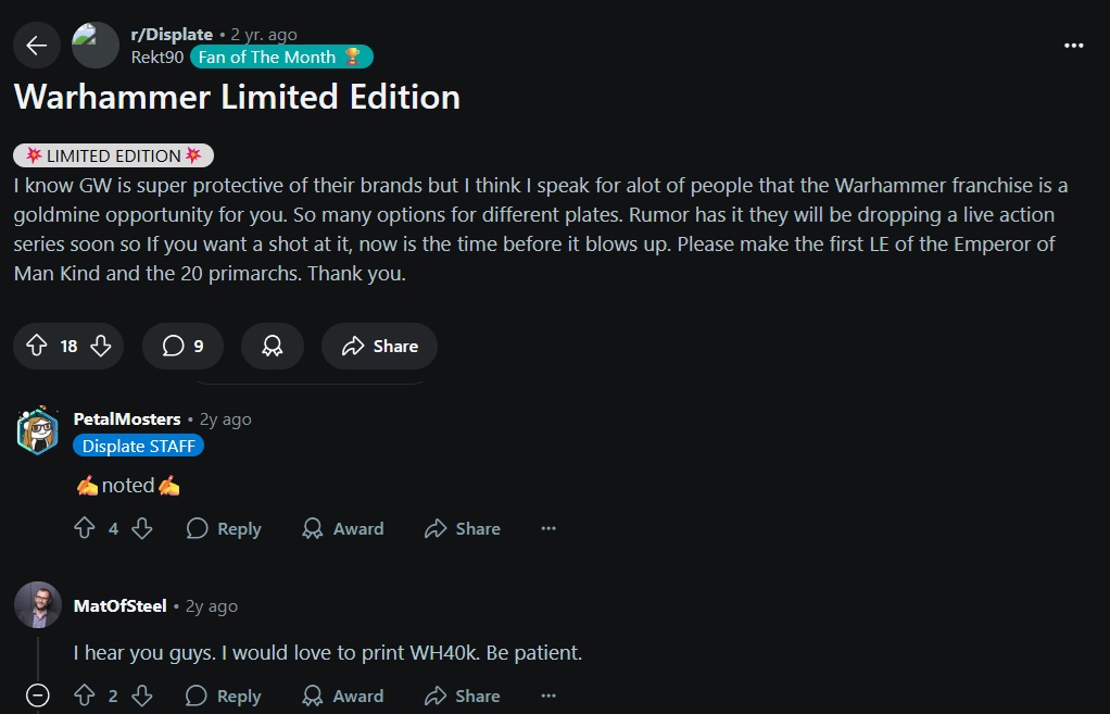 Then in May of 2023, an interesting exchange happened in the Displate subreddit.
