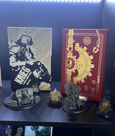 Here’s Cawl in its natural environment, sharing a shelf with the Limited Editions of a few other titles. While the Astra Militarum are getting ready to have a shelf to themselves before too long, they’re neighbors for the now.