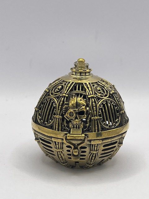 An AdMech thurible from Starforged. A thurible is an incense-burner that you typically suspend from a chain and swing to disperse sacred smoke pleasing to machine spirits. I’ve seen these used in Mass all my life and only learned the name for them when I ordered this, go figure.