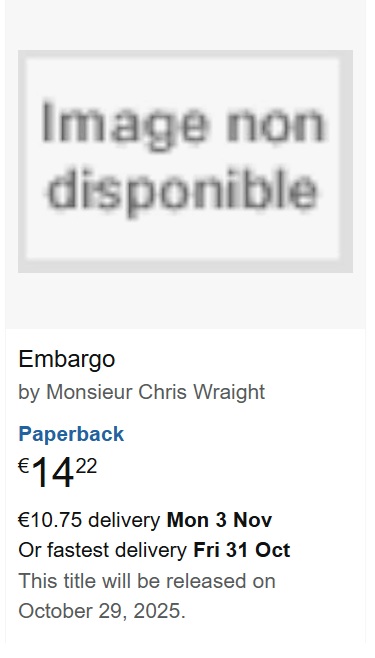 One keen-eyed French speaker noticed there’s a placeholder now appearing on France’s Amazon page for an upcoming Chris Wraight title. No idea what it’s called yet, but it probably won’t be “Embargo.”