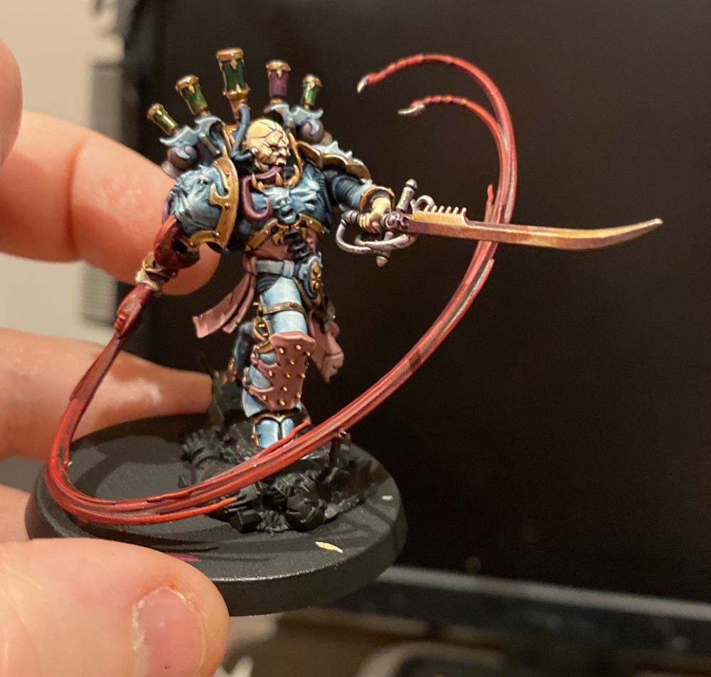 Let’s do one more! Prodigious Black Library author Ben Counter (Soul Drinkers, Blood on the Mountain) showed off this work in progress. While he happily labeled Lucius as “40K’s biggest jerk,” Erebus may want a word.