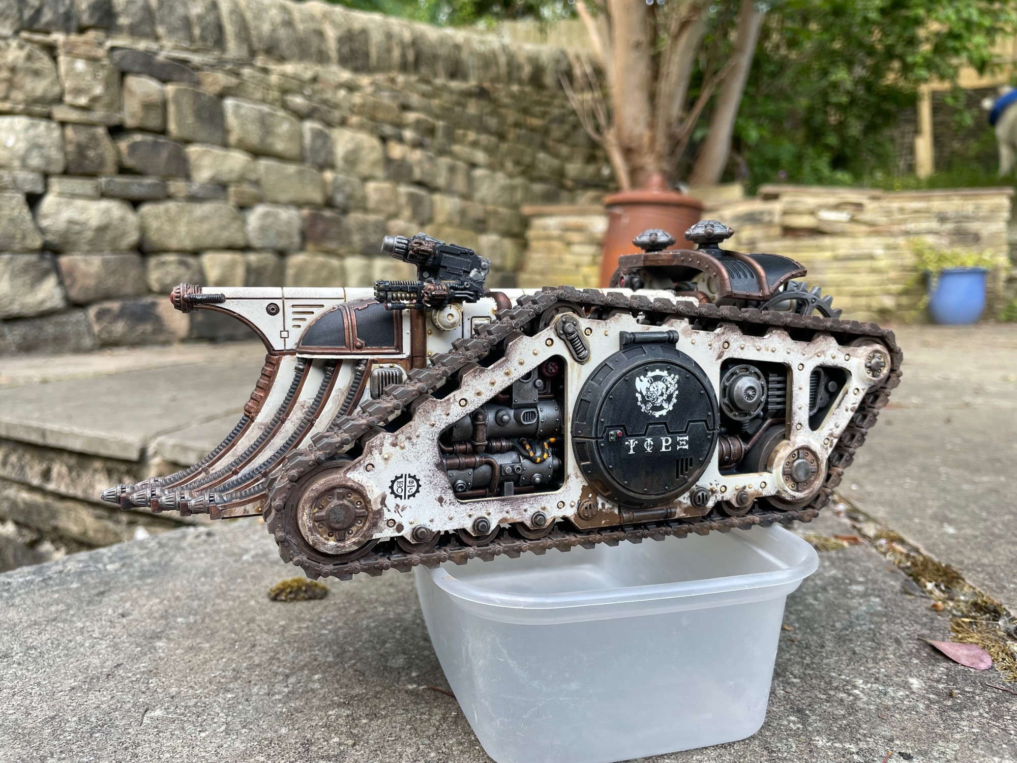 Guy Haley’s all over the Black Library Weekly this week, so it’s only fitting to show off this absolutely stunning Triaros Armoured Conveyor he shared this week. The weathered treading in particular is amazing work- this thing looks like it could actually be made out of metal instead of plastic.