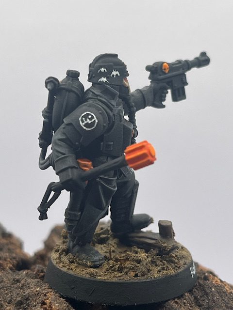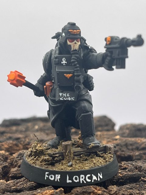 Longtime readers might remember two months ago I mentioned taking my daughter to see post-punk goth band Vision Video play in Louisville. Knowing that lead singer Dusty Gannon is into Warhammer, she brought him a couple of the Krieg Engineer minis-of-the-month from our local Warhammer store. It was a magical evening for Lorcan (only her second-ever concert!), but little did she know how much more magical it was going to get.