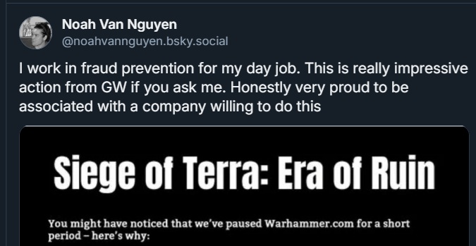 By noon, visitors to Games Workshop’s social media were given the following explanation.