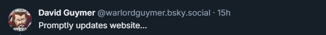 - Justin D. Hill (Shadow of the Eighth, Hell’s Last) often shares quick, one-minute videos on social media all about the craft of writing and what he’s facing at the moment- typically while walking through the beautiful English countryside. Here’s his latest on BlueSky and X about the year ahead. Some more Warhammer in there, we hope!