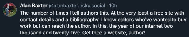 I’m not sure I’ve ever been a part of a group more impacted by imposter syndrome than writers, so I understand that particularly for less-established authors it may feel uncomfortable, even presumptuous, to make a website about yourself. But speaking on behalf of writers who write about writers, there is value in doing this and it really does help.