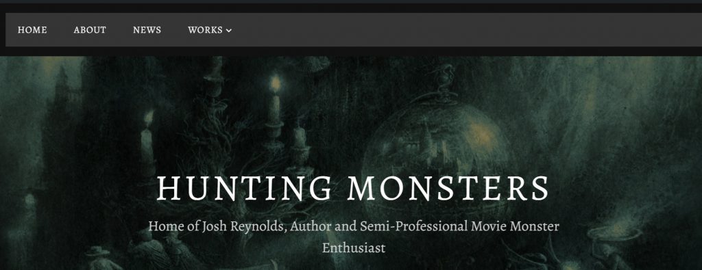 This is a clean, evocative home page that conveys a sense of the author’s identity. “Hunting Monsters” establishes a brand for Reynolds, an “Author and Semi-Professional Movie Monster Enthusiast.” That already gives us a sense of what he’s about, not unlike the “whiskey-soaked swear monkey” we encountered above.