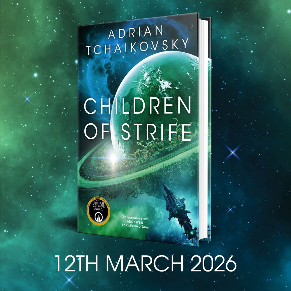 - Adrian Tchaikovsky (On the Shoulders of Giants, Day of Ascension) revealed the cover this week for his upcoming Children of Strife, the next chapter in his original science-fiction saga that began with the (extraordinary) Children of Time.
