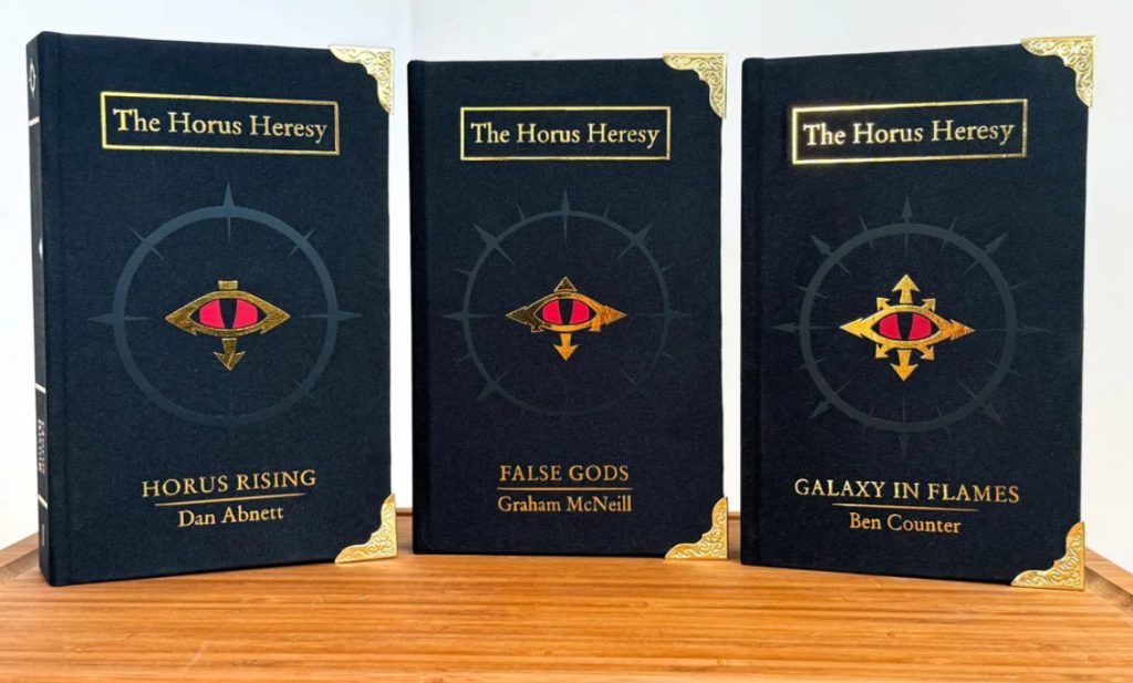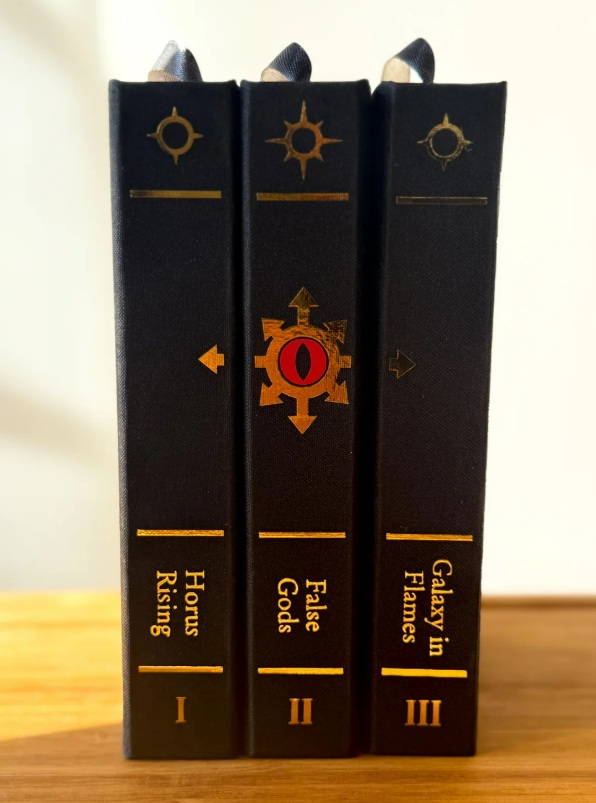 Longtime readers may remember Redditor u/badvoodoo68, whose wonderful rebinding work has been featured in this column before. This past week he shared his most recent project, the first three books of the Horus Heresy. His versions of Horus Rising by Dan Abnett, Graham McNeill’s False Gods, and Galaxy in Flames by Ben Counter are magnificent.