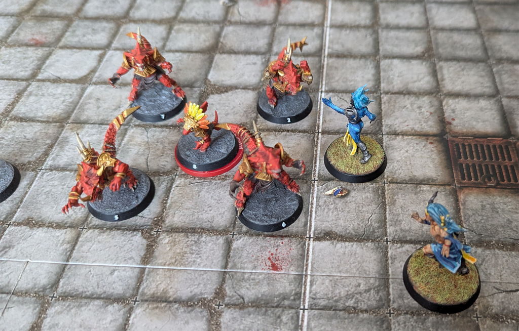 Once you’re in you have to hit the ball carrier of course, but this also needs some planning before you make the blitz, so that you remove as many assists as possible and get the best amount of Block dice. Assuming there is no Guard involved, just one of your players basing the two opponents on whichever side of the cage you attack from is enough to remove their assists. Depending on the circumstances, and especially where the opponent does have Guard in play, your own assists and strength might not be enough to make that hit better than 2D against. At that point this tactic should be limited to desperation only, or when you have specialists with skills like Strip Ball or Wrestle.