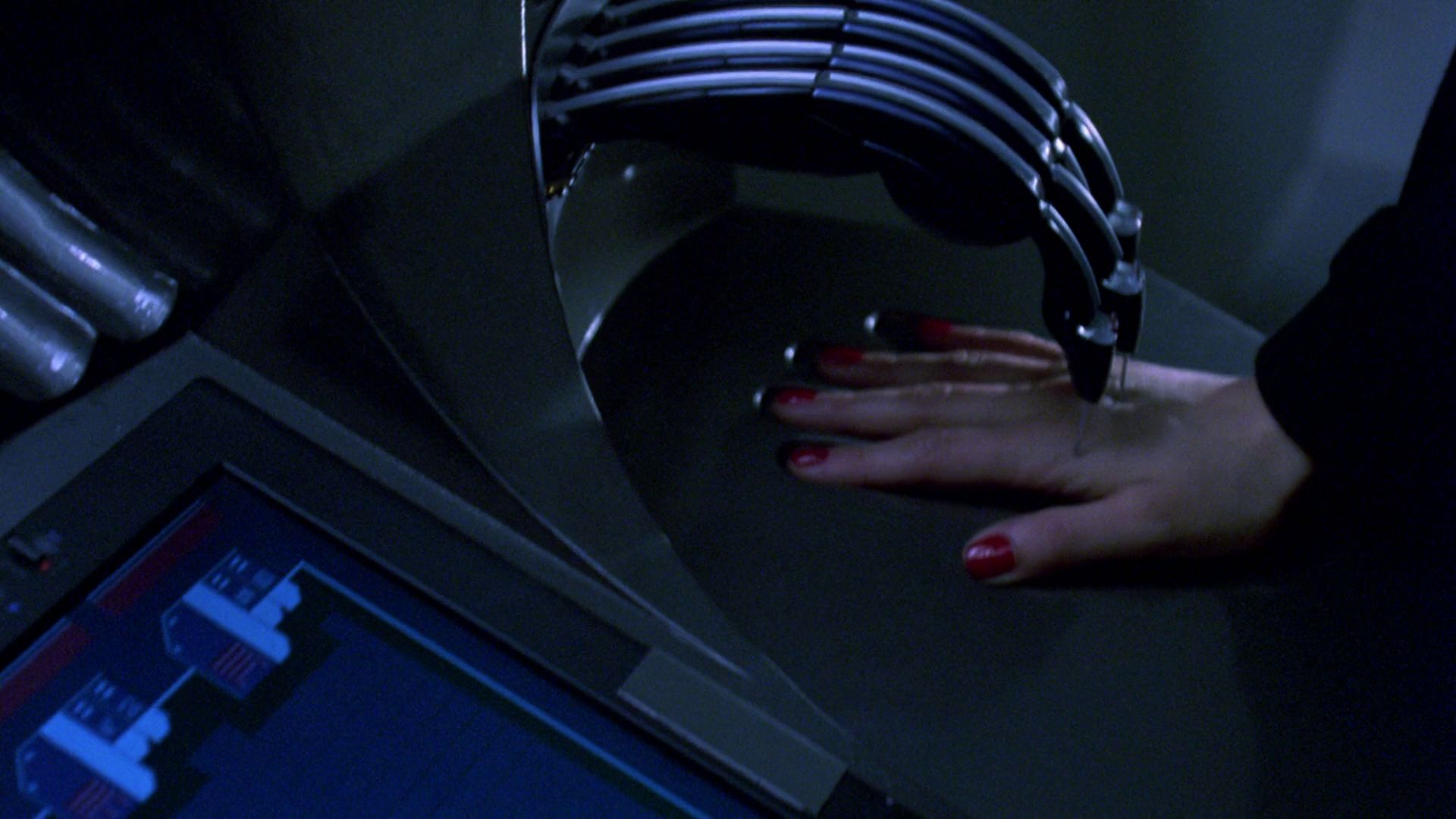 The strongest thing here by far is the production design. Not the sets, or at least not the locations and set-conceptions — this movie is set in way too many explicit warehouses, converted warehouses and sewers — but the way costumes, props, and the set dressings look. They do their best with a parade of dingy brown industrial locations in an incredibly grimy Prague. It’s not just the big things either, like the stake guns or the light grenades. There’s cool little props that only appear once, like the blood reader in the vampire castle that controls access to the vampire king’s inner sanctum, styled after the tail of a scorpion. This is hardly a surprise given del Toro’s chops and the projects he had just finished and would go on to helm — Mimic, del Toro’s first big American break as a director, was nothing special except for the design and implementation of its monster; a few years after Blade II, Hellboy II: The Golden Army would be similarly gorgeous in design and production aesthetic but underwhelm everywhere else; and Pan’s Labyrinth and The Shape of Water speak for themselves, the former being probably his most enduring work even though the latter won him Best Picture.