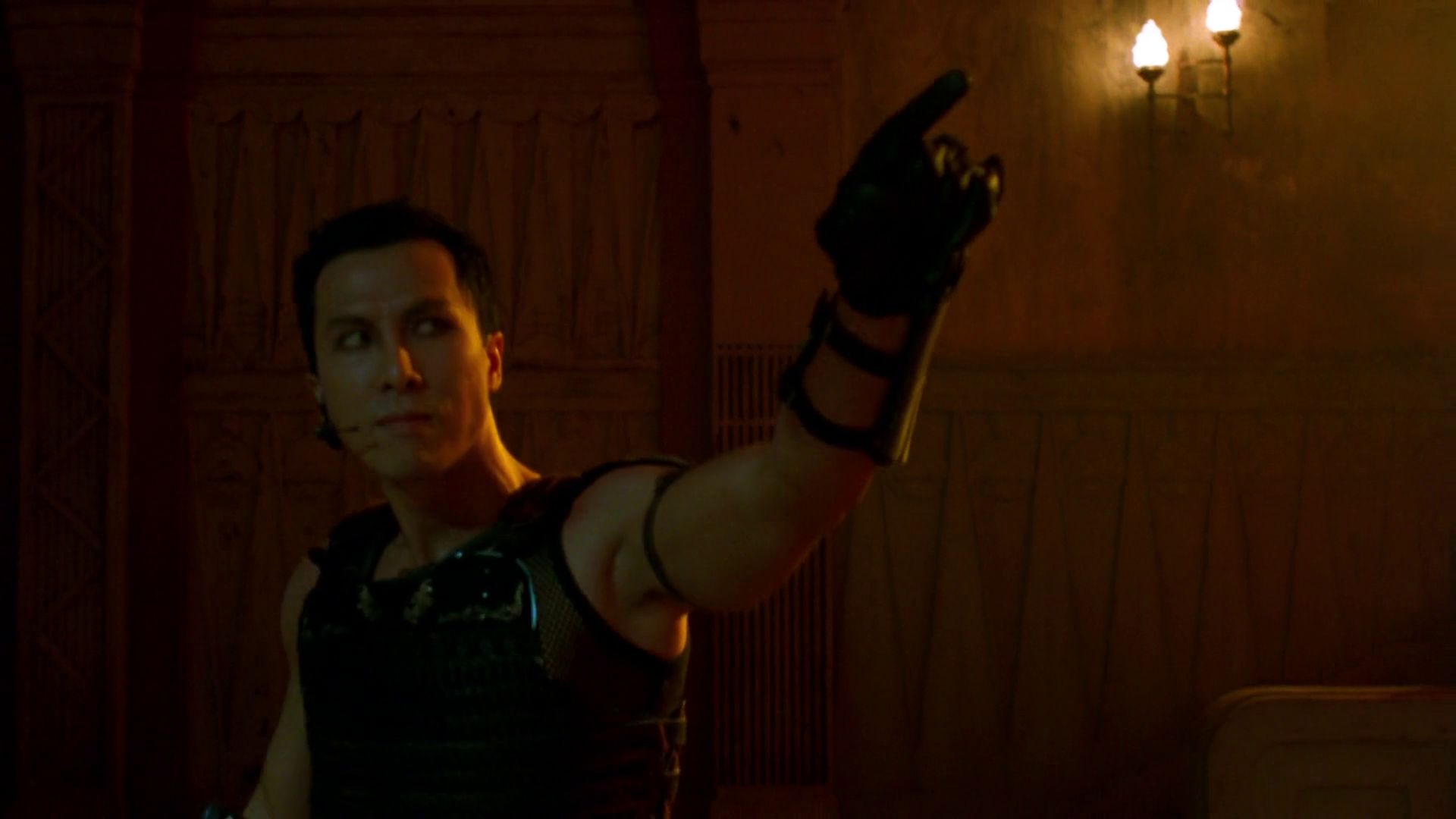 This is about where the good news stops. The cast is serviceable-to-good; Goss and leading lady Leonor Varela, who plays the vampire swordwoman-assassin-princess Nyssa, both see the biggest roles of their careers here (though Varela is maybe more memorable to this column’s audience as the first actress to play Marta, the put-upon on-again off-again girlfriend of Gob Bluth in Arrested Development). Ron Perlman is the leader of the vampire tactical team, playing the German “Reinhardt” and not even bothering to attempt an accent despite half the banter around his character clearly expecting him to have one; Kris Kristofferson is back as Whistler, and is a welcome return despite the script feeling it needs to spend the first 15 minutes of the film explaining how that’s possible given he shot himself in the head to stave off turning into a vampire in the first film (the answer is both tedious and unconvincing); Norman Reedus of recent Kojima Productions fame is Blade’s new youthful gadgets engineer Scud, woefully miscast as a “sick moves, daddio!” early aughts cool kid, constantly smoking what is clearly supposed to be a joint but is just a handrolled cigarette; his most irritating moment in the film is when Scud gets a FedEx box delivered to his vampire-hunting van on overwatch duty outside the nightclub and he opens it to pull out a box of Krispy Kreme donuts which he has presumably had shipped over from the Good Ol’ US of A, smiling and saying, “Mother’s milk.” Impressively, the joke neither works coming nor going, and making him incredibly annoying undercuts their half-hearted effort to make you think Whistler’s the mole instead of him. Most galling of all the casting decisions is prime Donnie Yen at the height of his powers playing Snowman, a silent member of the vampire tactical team who gets one cool sword fighting scene and then dies offscreen in the sewers. Snipes is nowhere near as checked out as he’ll become in the third installment of this franchise, but he’s not given much to work with, and he struggles with the choices the script does make about Blade.