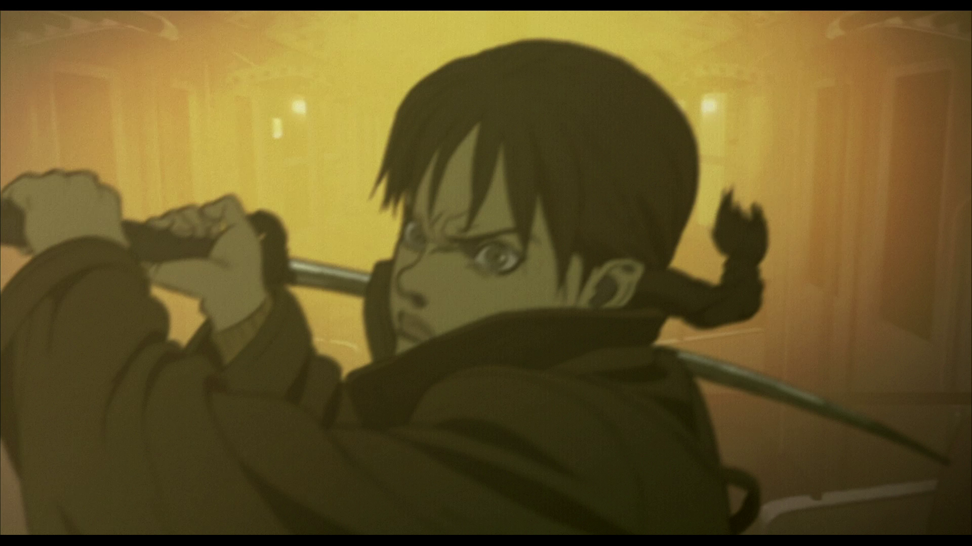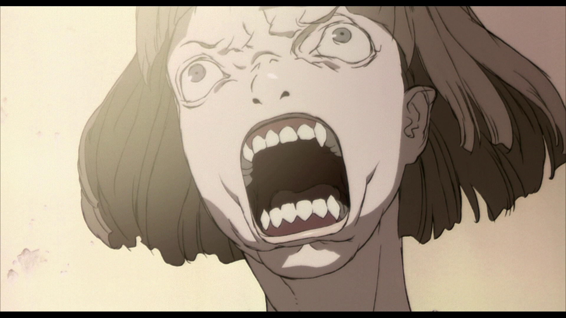 But here and now, it’s pretty great. The animation wears the use of early CGI proudly on its sleeve, even giving 3D CGI director Tokumitsu Kifune front billing along with the traditional art direction in the opening credits. This was in the days before “CGI” had a negative connotation in animation and, to be fair to the project, it uses it quite well for vehicles and light sources, with a washed out old-timey color palette that both communicates “the past” (our story takes place on a US airbase in Japan in 1966) and allows the animation to blend with the computer graphics much more easily. The use of CGI on much of the environment frees up the animators to pay a lot of close, specific attention to the characters, such as the number of distinct animation frames of both the gun and face of Saya’s handler David as he reloads in the middle of the fight in the motor pool before firing at one of the vampire-demon “chiropterans.” They didn’t need to spend that much effort on something most teams would simply skip altogether for budget reasons — both of time and money — but in putting it in there, they communicated that David was both comfortable with his gun and on the edge of panic; a trained and experienced veteran nevertheless not wholly used to the kinds of fights he was getting into now.