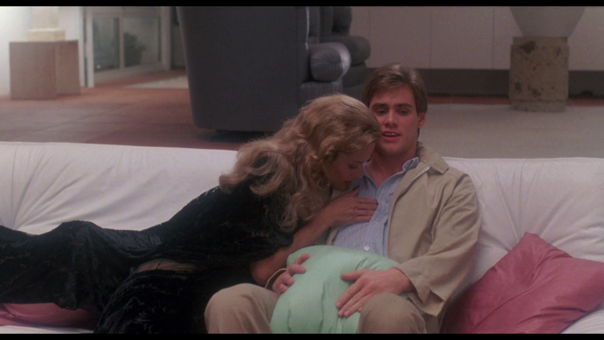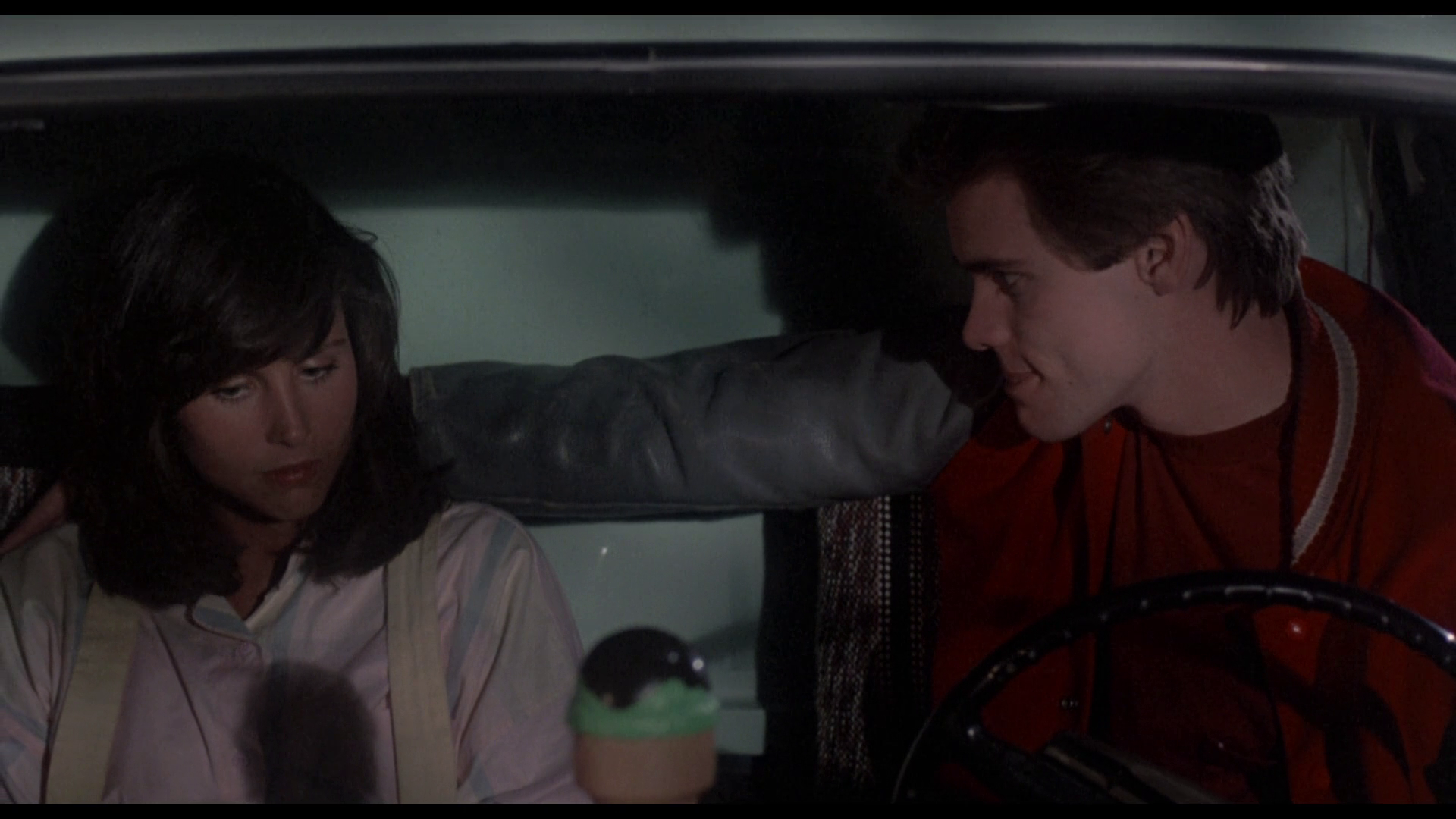 The plot is that the vampire Countess (Lauren Hutton) needs to drink the blood of a young male virgin every so many years to preserve her eternal youth. This has become difficult, apparently, because there are simply no more young male virgins anymore, due to widespread pre-marital sex in America. So she goes out hunting and alights on Mark (Jim Carrey), a virgin whose frigid, uptight girlfriend of apparently six years (???) won’t put out no matter how much he whines or takes her to the local romantic hot spot, which is like a parking lot somewhere in Santa Monica where all the other teens are already getting it on. She has to drink his blood three times over the course of some number of nights to complete the process — the script isn’t super clear or super picky about the process here, you’ll be shocked to discover — and as she does so, Mark will slowly transform into a vampire. Great. You can see the arc of the plot already: She’s gonna get the first two, the love of his life is gonna intervene, realize she has to lighten up and fuck him to save him from becoming the vampire’s eternal thrall, and we’re gonna get out of here in 90 minutes.
