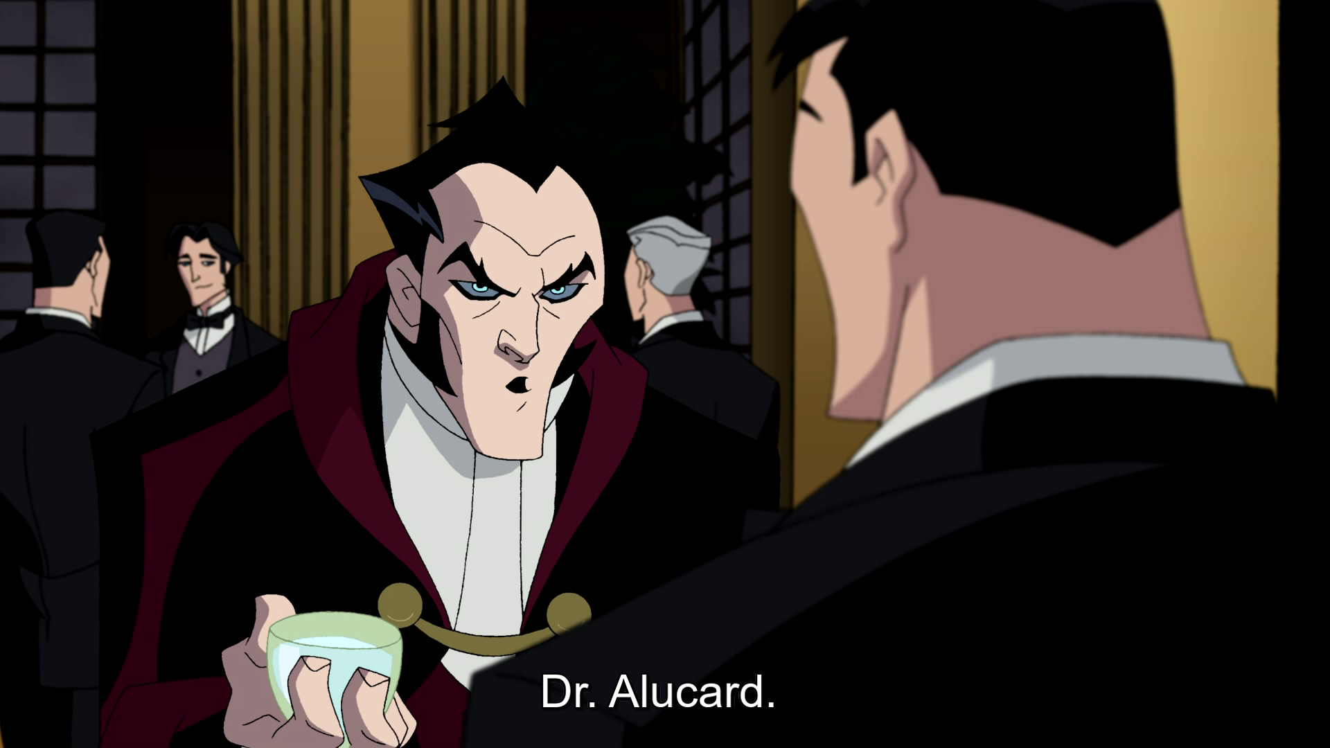 While enamored of every single hack blood or fang pun the writing room could come up with, the script is completely disinterested in telling its story. Not a compelling story; just a decently-crafted story. A lot of stuff just happens because it’s supposed to. We’re not talking, “Well, why doesn’t Dracula just kill Bruce immediately,” though, yes, you could ask that; that sort of Eagle-flying-to-Mordor plot critique gets a pass. We’re talking, “The inciting event of the story is that Dracula’s just randomly buried in a Gotham cemetery with no explanation why; Penguin opens his coffin while looking for buried treasure on a tip from an Arkham inmate who disappears after the first two minutes of the movie.” We’re talking, “Joker ‘drowns’ in the first 15 minutes, obviously setting up his return as a vampire and Batman vs. Vampire Joker…but instead he didn’t actually die and just kinda got out of the water and wandered over to the cemetery so he’d be in the right place for Dracula to bite.” Mostly stuff just happens because it has to happen; there are a number of tolerable little nods to the original text, though by this point I’m real tired of the “Dracula is admiring her neck, not her necklace” spot and the “Alucard is Dracula spelled backwards” spot, which we get in quick succession at the Wayne Manor dinner party that ends act one. Bar none the best reference to other vampire media is calling the civilians that Dracula snatches up for his army the “Lost Ones” and having missing posters up like the ones from The Lost Boys in a scene or two, and that’s not like, good or interesting; it’s just kind of unexpected, and there’s the bar to clear.