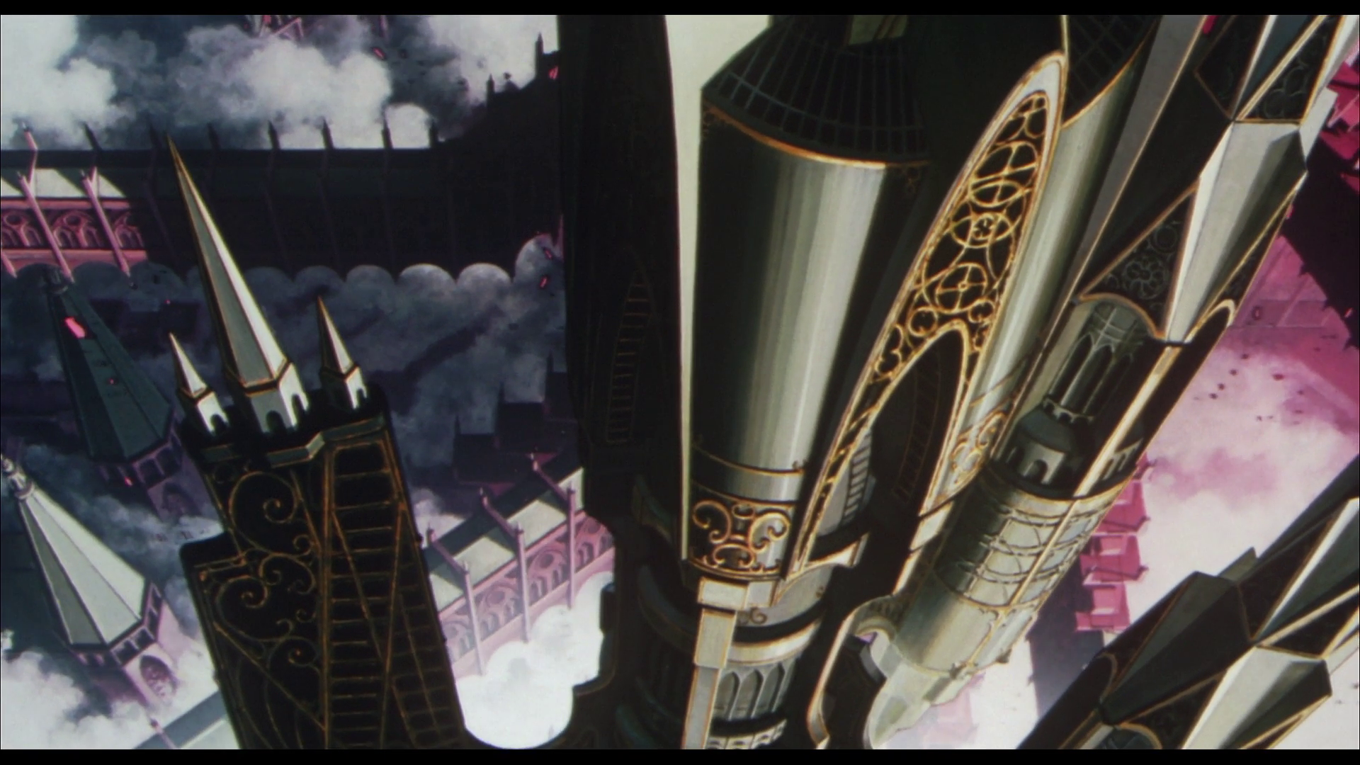 And it does look better; this offering was designed for theatrical release and American attention instead of the TV-grade budgeting the 1985 film got, so the animation remains kinetic and smooth while they get to travel a whole lot more, with a bunch of different settings and characters, rather than being confined to a homestead, a castle, and one or two visits to a town like in the original OVA. There are a lot more tendrils and tentacle-like attacks — shadows, capes, vines, spikes, liquid metal, and so on — than blasts and beams this time around, with the commensurate allocation of more animation resources to those things. And yet. And yet.