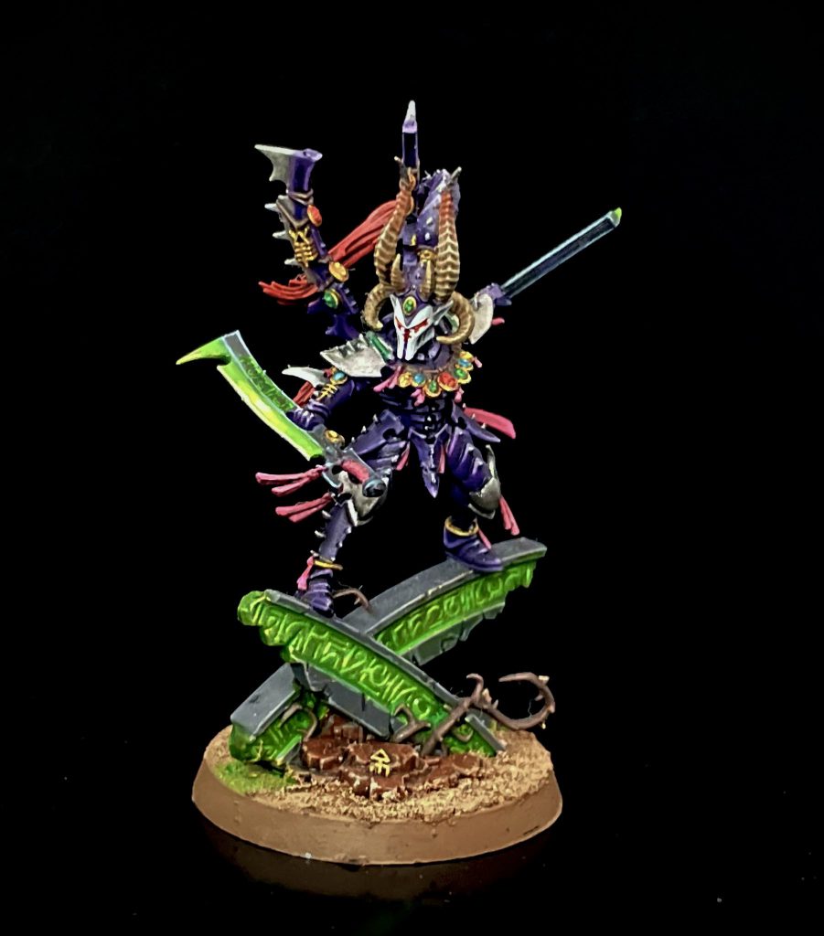 The lore for each of these Relics are amazing and really sell the theme that the Drukhari don’t mess about when it comes to crafting these monstrous items. The Artificer relics are both fancy hats, with the Helm of Spite giving everyone in the bearer’s unit a 5+ Feel No Pain against Psychic Attacks. Meanwhile, the Mask of Screaming Skulls gives the model a 12” aura of Not Today, preventing enemy units arriving from Reserves.