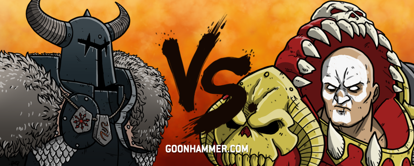 This is a pretty gnarly fight for the Blades of Khorne. The biggest challenge will be the speed that the Slaves to Darkness can move at, with a Slaanesh mark they can make a 3D6 charge which is quite scary on Chosen. Khorne units do not have great saves so if they can get the early charge thats really going to hurt them. The Slaves to Darkness list has fewer detachments so they’re going to get to control who goes first. Blades of Khorne’s only real shot is they have a lot of disposable chaff they can use to stonewall the Knights and Chosen, but they may struggle to crack their armor.