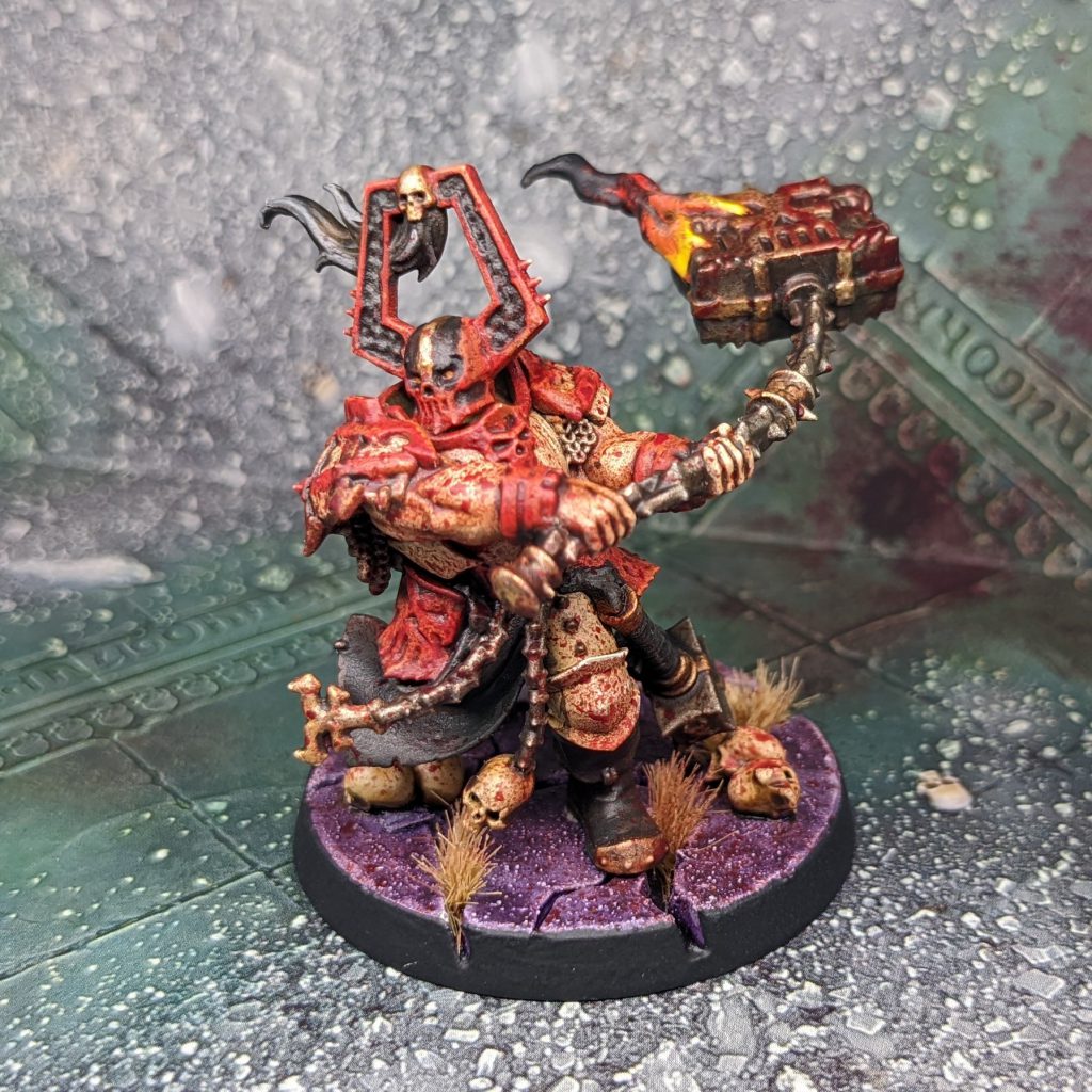 The Mighty Lord of Khorne adds 1 to Wound rolls to units within 12″, which thanks to their big base and every unit being one model, it’s quite easy to keep many inside of it. He also can hand out First Strike to a unit, which is a cherry on top. The Bloodsecrator can add +1 attack once per battle within 12″, which is again quite easy with a bunch of one model units. It also gets the relic which lets it add D3 attacks to other units, at least as long as its wound count holds out.