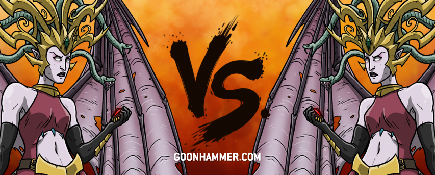 Krethusa has the advantage of numbers, both the number of witch aelves and their recursion, while Morathi isn’t too far behind with her more combat capable Blood Sisters and of course the Shadow Queen herself.