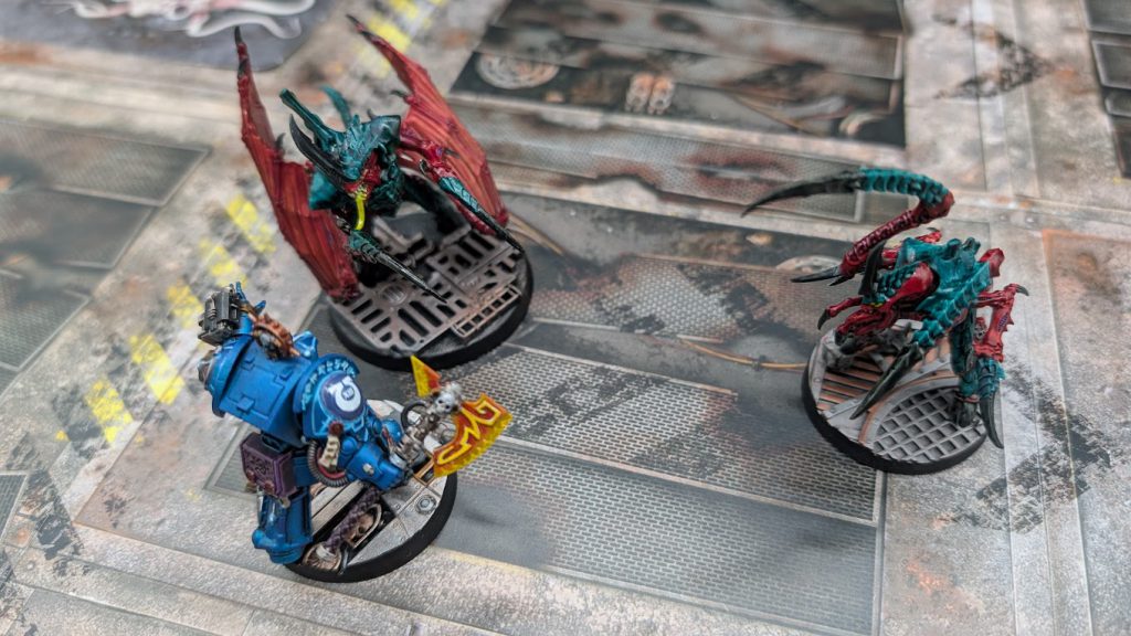 This scenario was good for teaching the various special rules attached to weapons. The problem with the scenario is that it relied on the variability of the Terminator Librarian to teach those rules. Unfortunately for Brother Septimus, the model’s rules were written for a unit that had tools designed to minimize the pitfalls of variability but the scenario’s rules did not grant those rules. And since the Terminator Librarian’s shot number and damage are all variable, the unit struggled. By contrast, the Tyranids mostly do chip damage for their various scary claws and guns but they have so many attacks on weapons that are designed to prey upon Marines. Indeed, in this scenario the only weapon on which the Tyranids are not wounding Brother Septimus on a 4+ are the Termagant’s melee attacks. That being said, I suspect over the next few issues we are going to get access to Oaths of Moment.