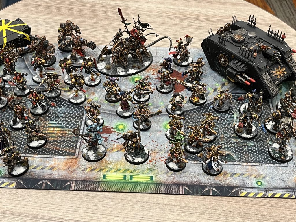 The main Black Legion heroes, Horus, Abaddon the Despoiler and Haarken Worldclaimer are all name-checked. We get pictures of the Black Legionaries using Legionaries but also all four cult troops: Plague Marines, Khorne Berzerkers, Rubric Marines, and Noise Marines. This narrative call-out is pretty cool, because it gives us an alternate color scheme for one of the Combat Patrols coming down the bike (the World Eaters Combat Patrol) and a lore reason to do it that way.