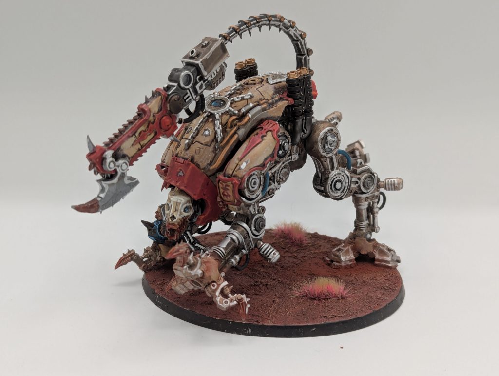 One of the big changes to War Dogs from the Index was the drop in OC and losing additional OC when the units bracket. This means it’s much easier to steal objectives from War Dogs than it used to be, and that in turn shifts how they play – putting a single War Dog on an objective is no longer sufficient if you have lots of threats bearing down on you. Given you’ll be taking a number of Karnivores and Stalkers, your best play here is to use your speed to apply pressure early and often, screen out deep strike expansion, and drown your opponent in mid-size vehicular threats before they can respond effectively.
