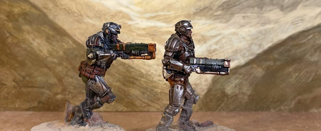 They scale well with Modiphius’ plastic Power Armour sets, and you’ll not notice any difference between the resin and plastic knights once they’re on the table.