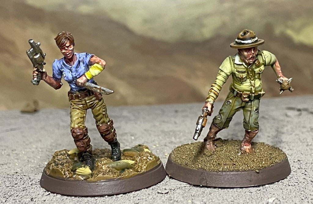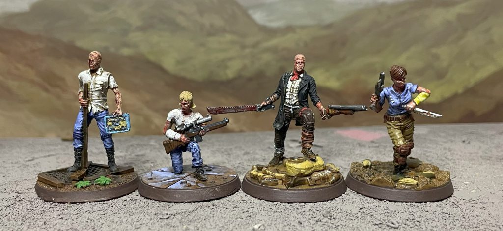The Ghoul Survivors box contains six models – five of which are named NPCs and one representing a generic ghoul survivor, alongside six model-specific scenic bases. They are very realistically scaled so if you’re used to multipart plastic or Games Workshop models these will appear a bit spindly, but they’re made in actual human proportions which is a delight to see.