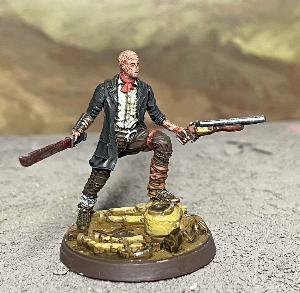 Arlan was an easy match for the leader, with a strong pose and hands that would be simple to switch for two weapons. Likewise, the Ghoulish Remnants would work well for hand weapons and/or pipe rifles and the slightly more feral look makes them good horde models for the grunt part of the crew. The Ghoul settlers have a great set of poses that worked well for various specialists.