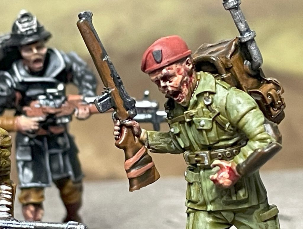 I think this has succeeded – it’s obviously not “normal” skin, and reads as Ghoul decay without being a nightmare to paint or appearing inappropriately even.