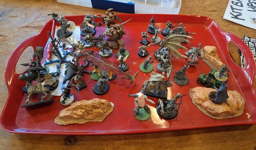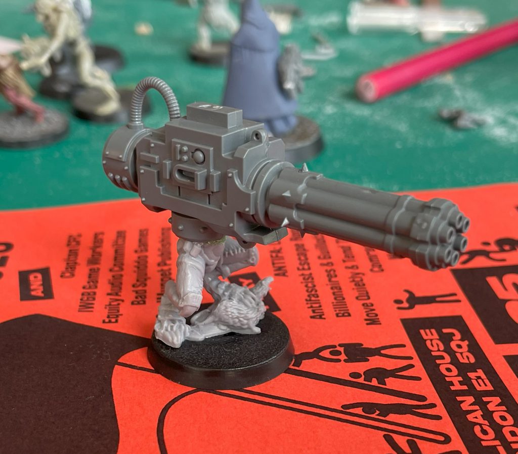 The kitbashing was a huge success, and we’ll be running this at events in the future. With no guides beyond advice if you asked for it, it worked well and taught me a lot. People who came in with ideas of what miniatures should look like made some lovely miniatures. Fair enough. People working in the industry in one form or another (including myself) made some standard-to-blanchitsu style pieces, all exactly what you’d expect. We had a chat and felt very smug for bringing it together. All to the good. What was really interesting was the reaction of people who had never touched a miniature before. Faced with a dizzying array of bits from all of our collections, going way back beyond rogue trader into strange malformed bits of lead, they picked up the tools and made beautiful monstrosities. When we explained they could do whatever they like, no expectations whatsoever, there was such joy – arms became heads, sprues became insanely out of scale keyblades, legs proliferated, chainsaw bodies married to Quar feet. You could really see the sense of possibility spilling out of people and I think we miss that occasionally in miniatures gaming. When we pick up a sprue, we know what it should be. All the converting in the world, even the greatest masters of the weird, can’t create what you get if you come into this with no rules, no expectations and a lot of ideas.