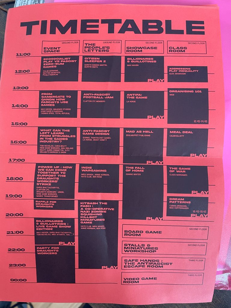 Games Transformed is an annual volunteer-run festival celebrating gaming, radical politics and taking positive action to combine the two. For the first time this year it involved miniatures gaming, letting us paint-and-glue people join in alongside staples of RPGS, AARGs, video and board games. It was a hugely diverse crowd all celebrating antifascism, with a will to create new modes of expression in games spaces and take back some of the power we have leant to companies all over the industry. Overall, the event had a couple of major strands – how games can be subversive, antifascist and anticapitalist (with lots of excellent examples on show), how games can support and further class struggle, and what we can do to counter the upswing in fascist infiltration of our gaming spaces. That meant dozens of talks and panels, drop-in-drop out gaming events, and training sessions – a packed schedule, and inevitably I didn’t get to play everything I wanted or chat to everyone I meant to. However, the event as a whole left me immensely positive about gaming, politics and a route to a better future, and I think we need that right now, don’t we?