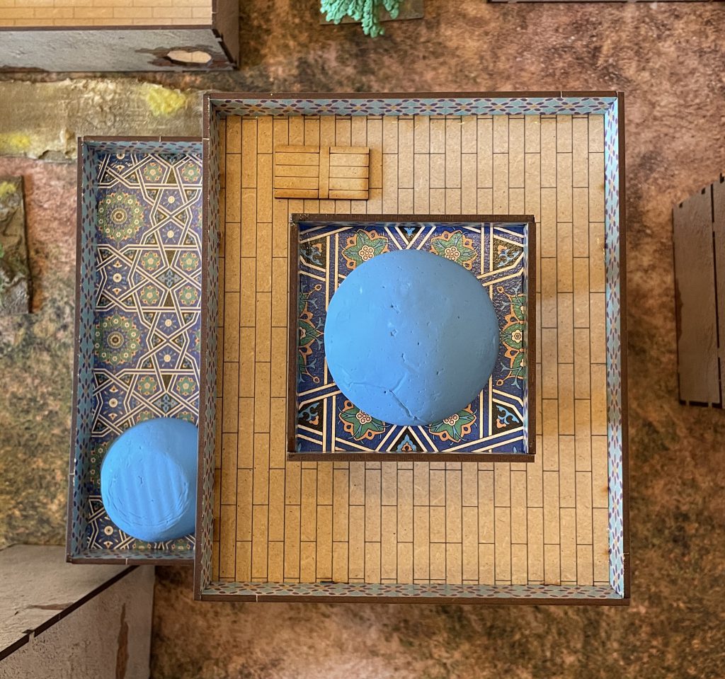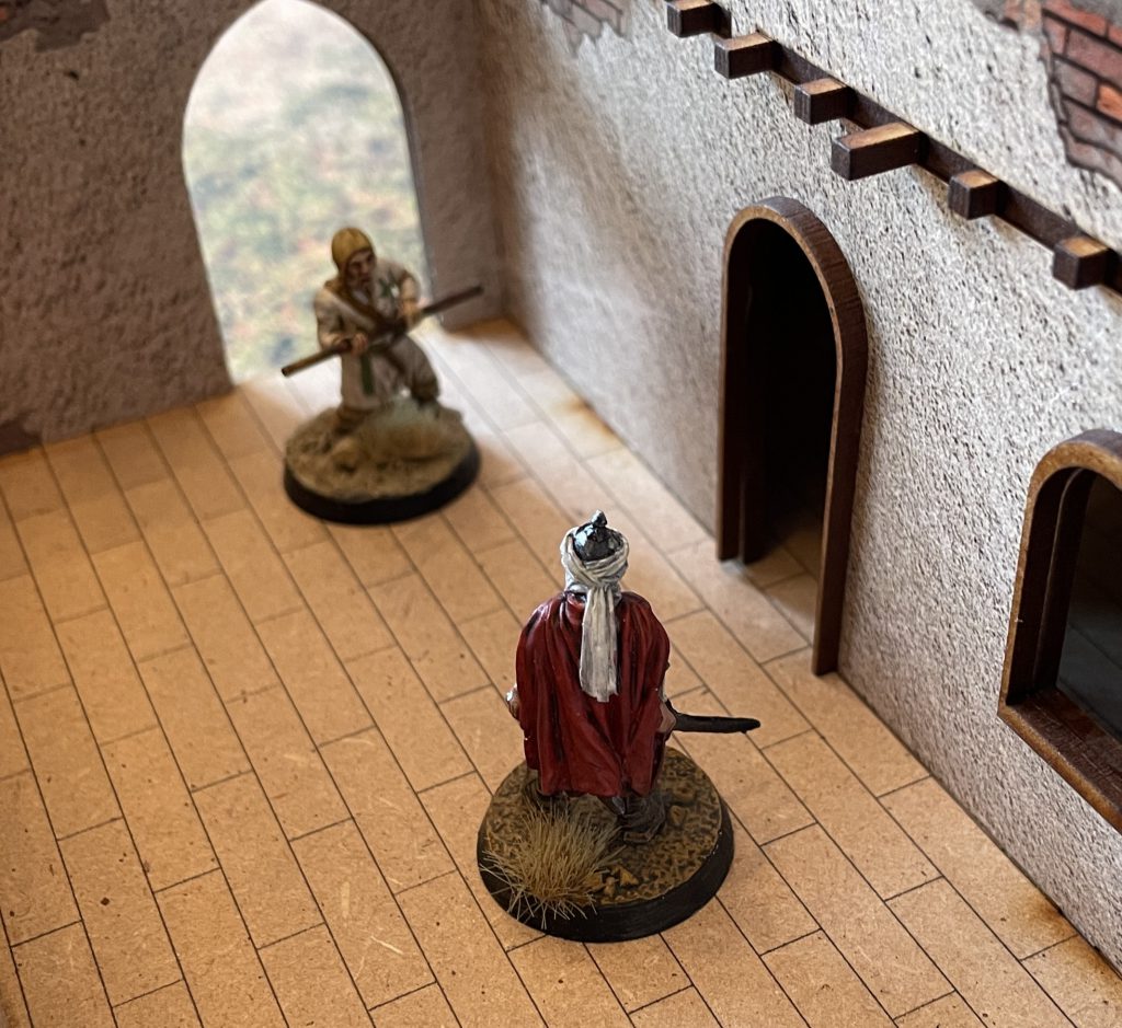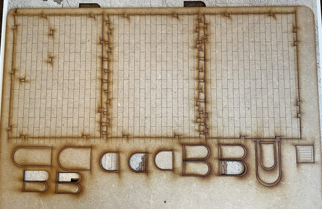 The buildings arrive as flat-packs that are well packed, and this is important as you’re likely to be ordering these from quite some distance – despite shipping from Spain, not a single component arrived loose or damaged. Smaller buildings are on two sheets – one with exterior/interior wall printing and one with floors, roofs and window details. Every component is easy to remove from the surrounding MDF, and, with the single exception of the square window frames on the Mosque, requires no thought to punch out beyond keeping everything in the right order.